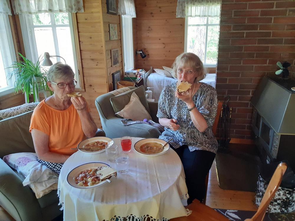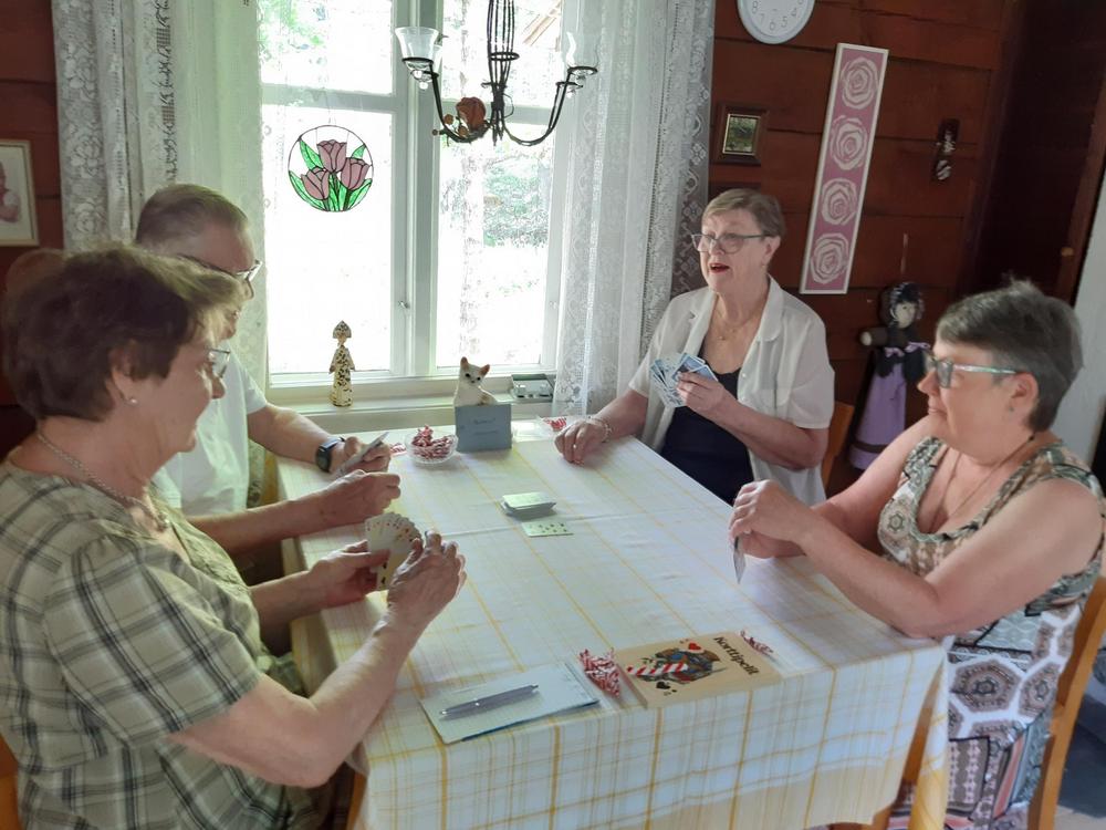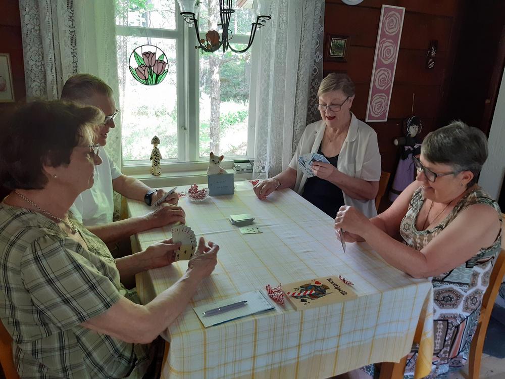 Lämmin päivä toukokuun lopulla, pelattiin korttia ja nautittiin maisemasta, seurasta ja hyvistä syömisistä nyyttikestien merkeissä.