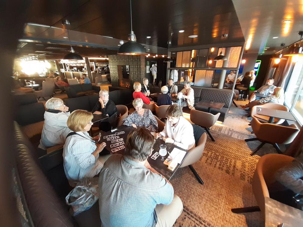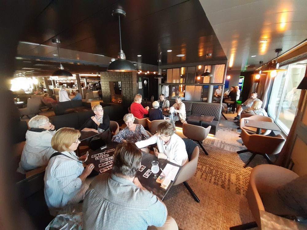 Stellar Loungen tiloissa tutustuttiin hetki toisiimme, kohennettiin vähän pelipöytiä ja melkein kaikki pelasimme pelejä Uno, Maija, Shanghai, Lupaus ja Kasino. Tila oli suljettu alue, josta avautuivat upeat merinäköalat. Siellä meille oli tarjolla pientä suolaista ja makeaa purtavaa, kahvia, teetä ja virvokkeita koko matkan ajan Långnäsiin saakka. Aika kului niin nopeasti, ettei huomattu ottaa lainkaan kuvia.