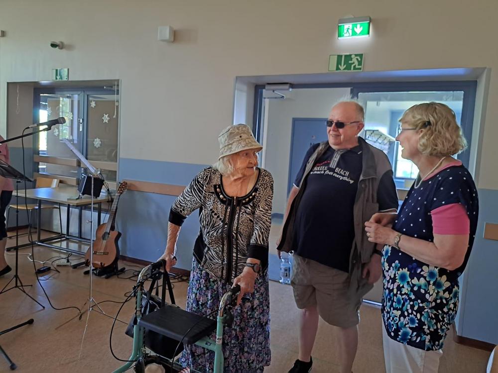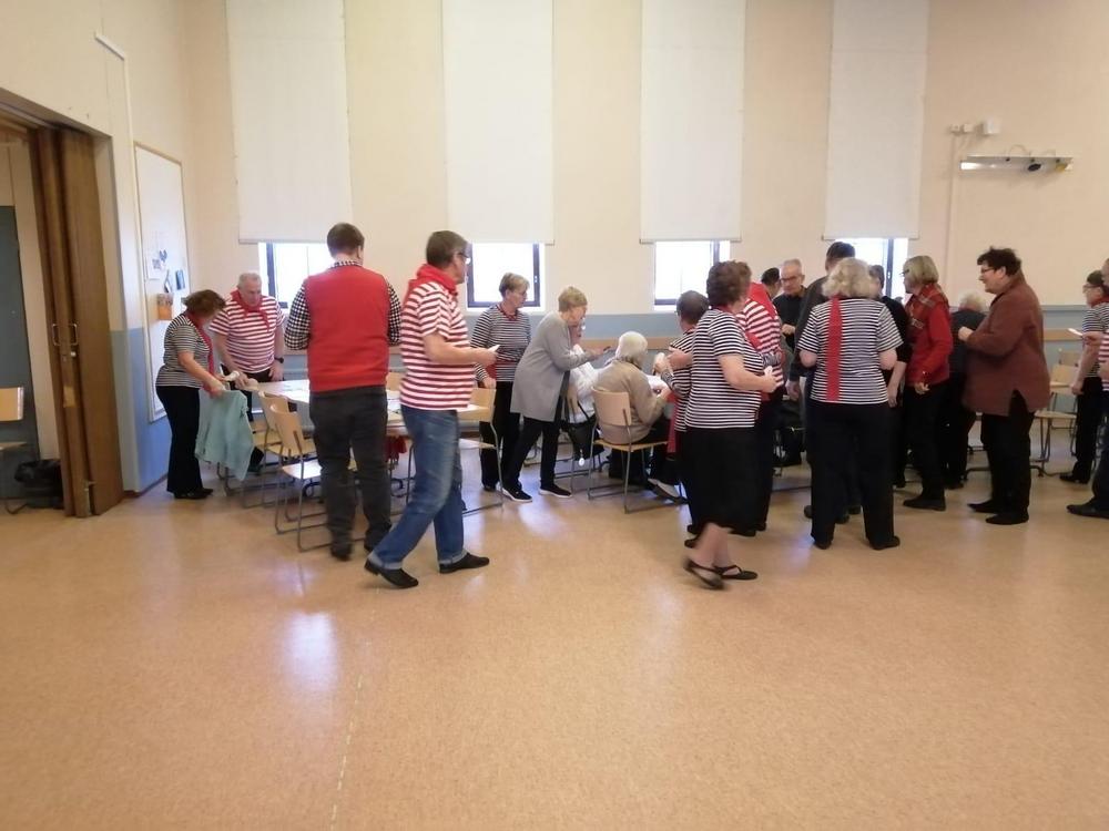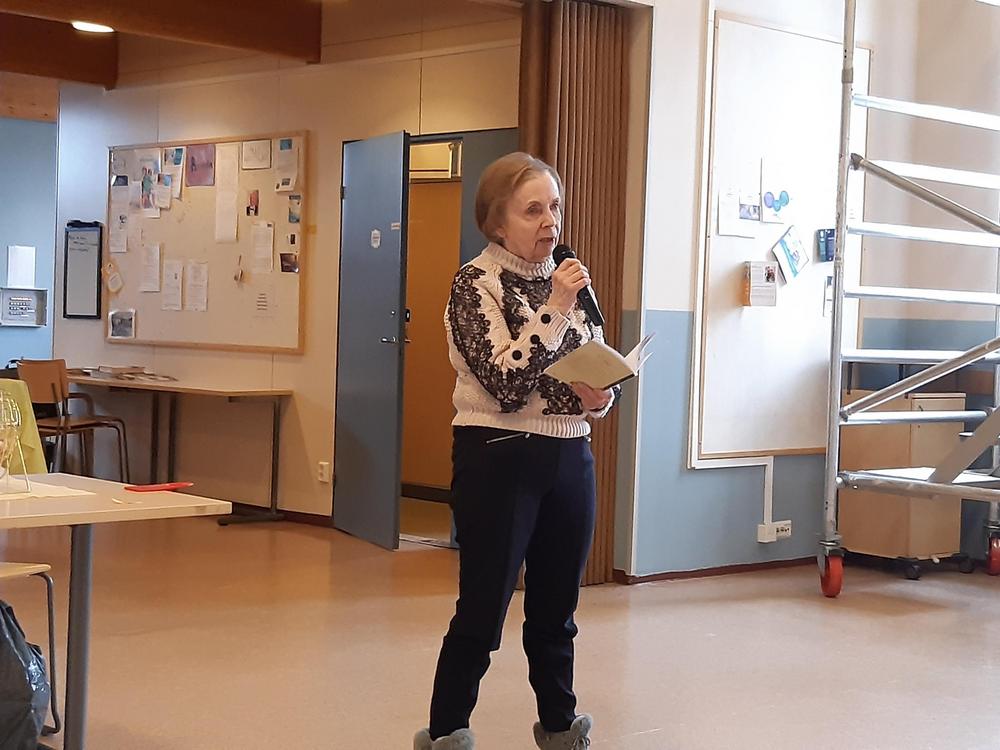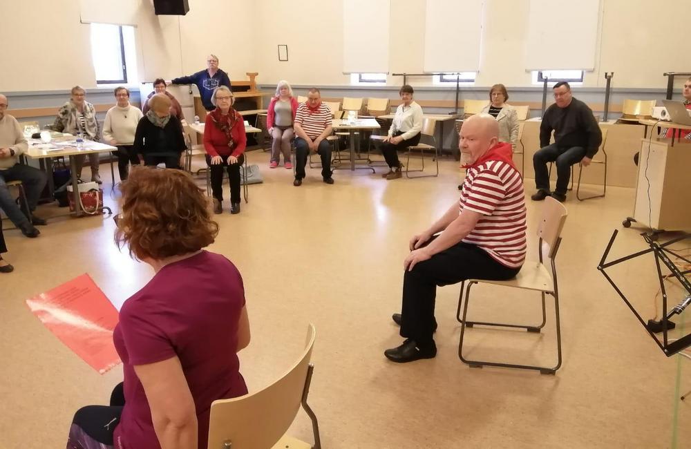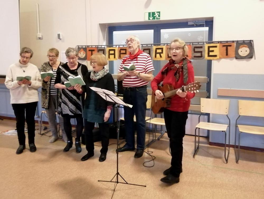 Kevään 2024 viimeinen tiistaikerho oli 28.5. Vetovuorossa oli lauluryhmä. Kuten arvata saattaa se sisälsi paljon laulua ja soittoa. Päivi Korvensyrjä säesti kitaralla, lauloi ja lisäksi myös lausui pari runoa. Pöydillä oli kieloja ja syreeneitä. Tunnelma oli leppoisa. Mukaan oli tullut myös Annikki Oikelmus poikansa kanssa. Annikki taitaa olla kerhomme vanhin jäsen.