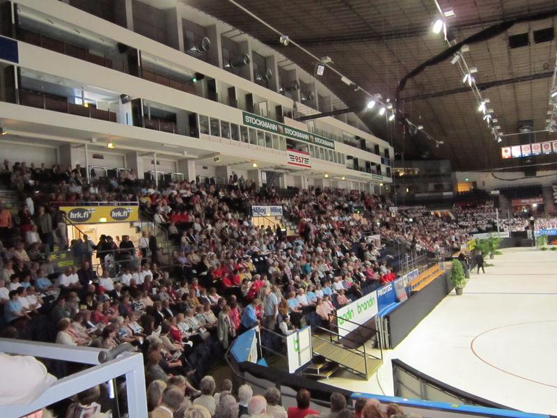 Yleisöä pääjuhlassa Hakametsän jäähalli