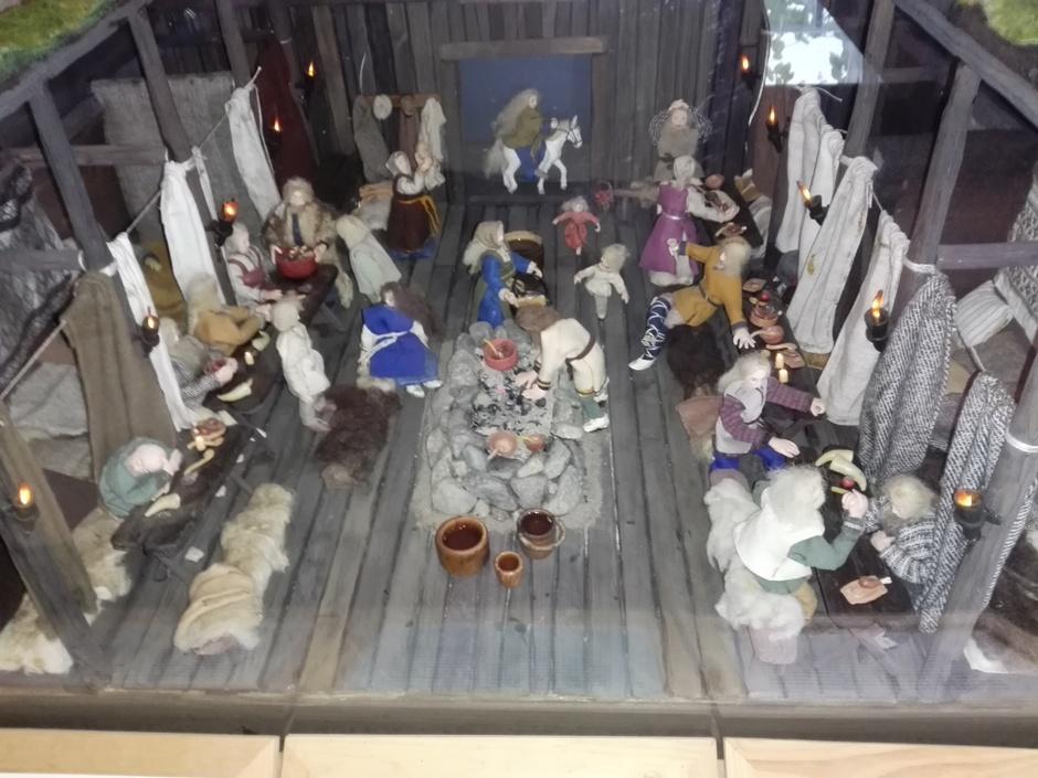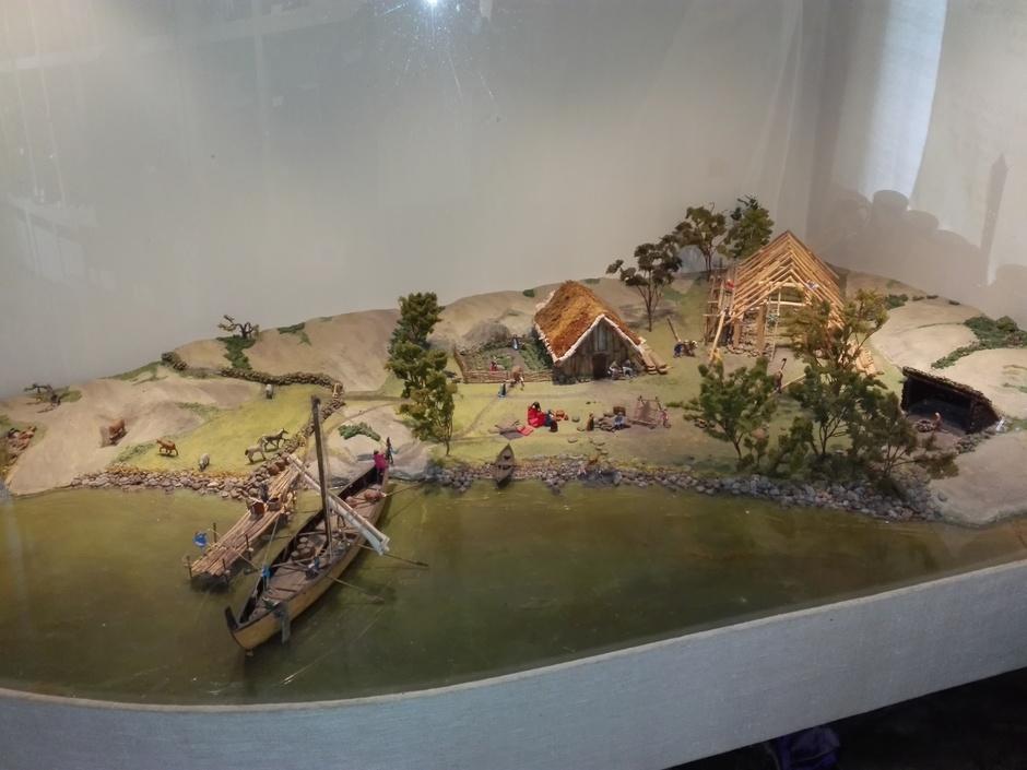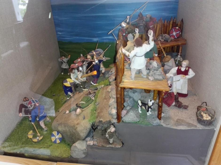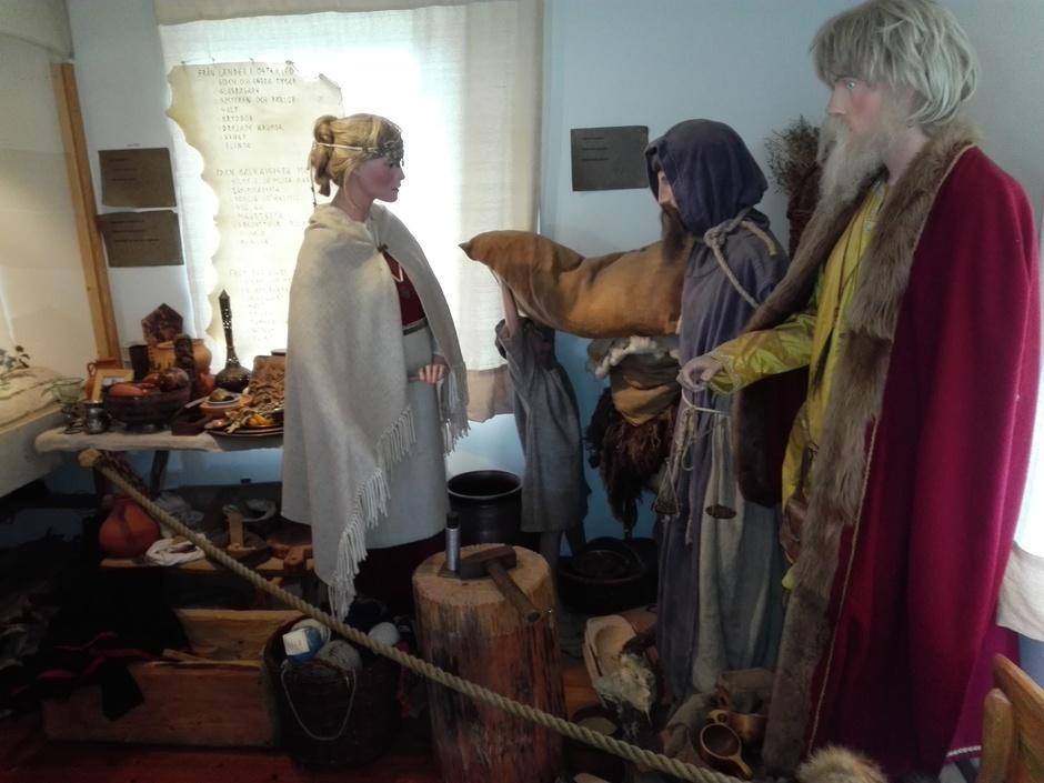 Viikinkikylän päällikkö ja retkeläisiä